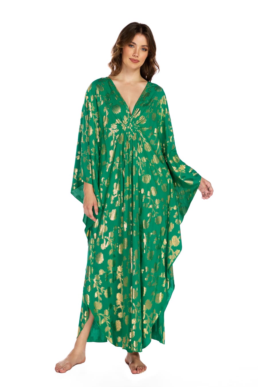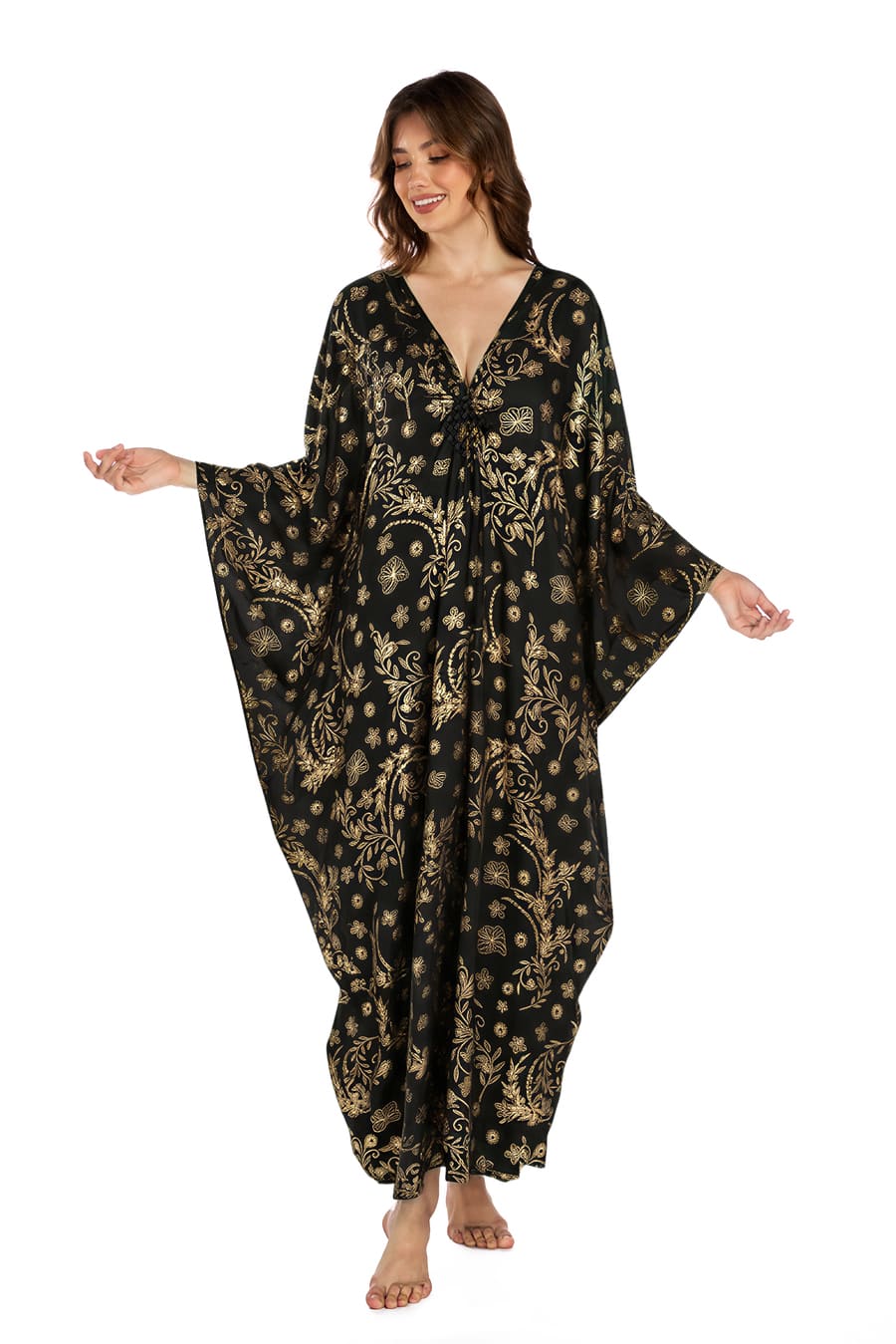 One-size boho kaftan dress (US S–2XL) with a relaxed, flowy fit. Perfect as a swimsuit cover up or beach maxi dress.